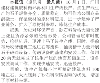 匯川建材建筑廢料循環(huán)再利用生產(chǎn)線投產(chǎn)