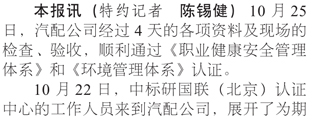汽配公司順利通過職業(yè)健康和環(huán)境管理雙體系認證