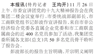 我集團組織黨員參加市委宣講團黨的十九大精神報告會