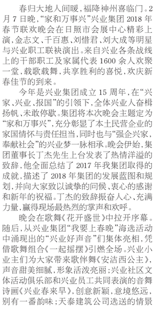 興業(yè)春來早 家和萬事興 集團2018春節(jié)聯(lián)歡晚會星光璀璨濃情上演